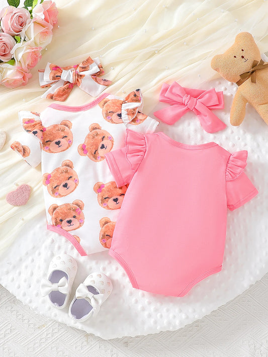 2er-Multipack Baby-Bodys für Mädchen mit Bärenmotiv