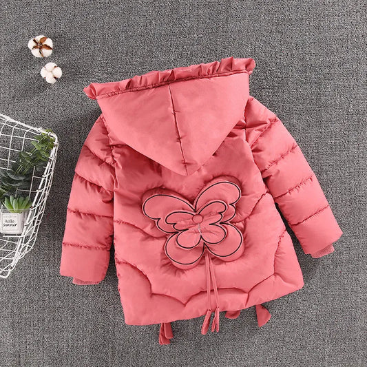 Winterjacke / Steppjacke / Daunenjacke mit Kapuze & Schmetterlingsmotiv für Mädchen