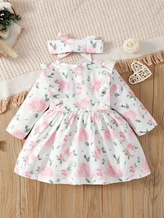 Zauberhaftes Baby-Kleid mit Blumenmuster und passendem Haarband