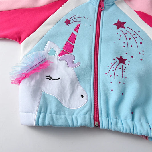Fleecejacke für Mädchen mit Kragen ohne Kapuze / Einhorn (rosa, pink, blau)