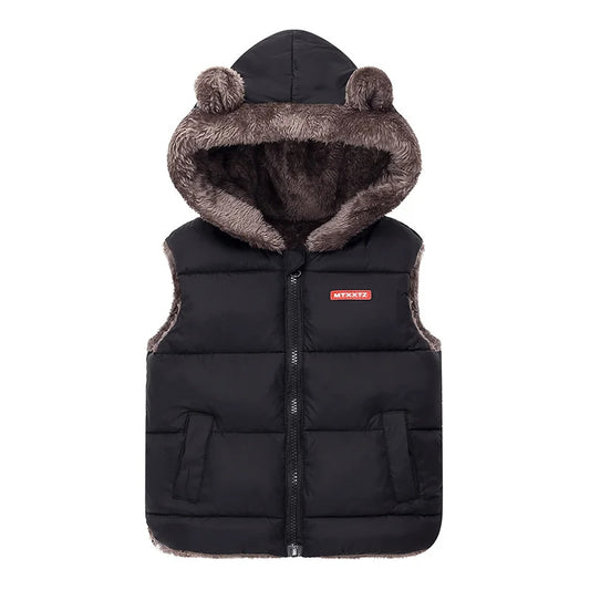 Flauschige Kinderweste mit Kapuze & Bärchen-Ohren
