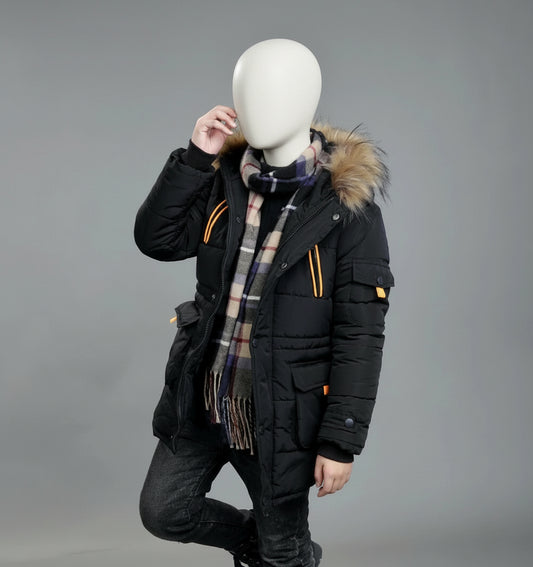 Winterjacke mit Kapuze & Kunstfell / Winterparka für Jungen / Daunenjacke Wind- und Wasserabweisend