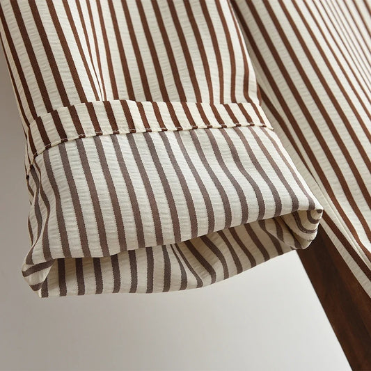 Elegantes Kinder Outfit – Bluse mit Falten & gestreifte Hose