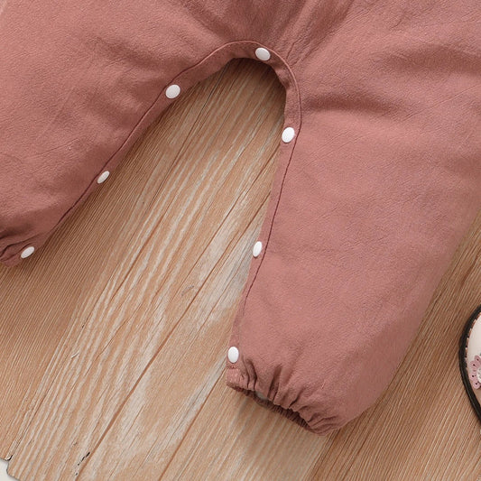 Baby Mädchen Overall mit Blumenstickerei & Peter-Pan-Kragen – 2in1 Strampler in Altrosa