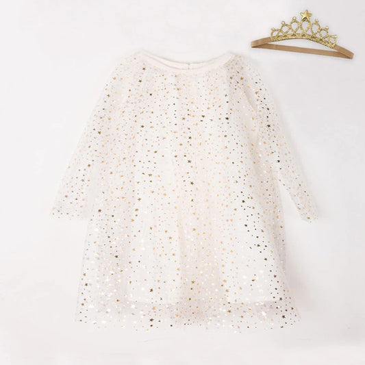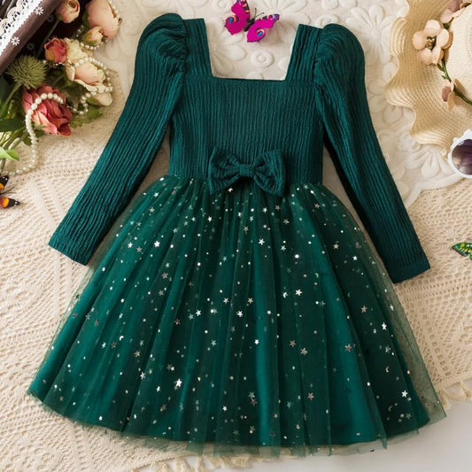Glitzerndes Sternen-Langarm-Tüllkleid für Mädchen