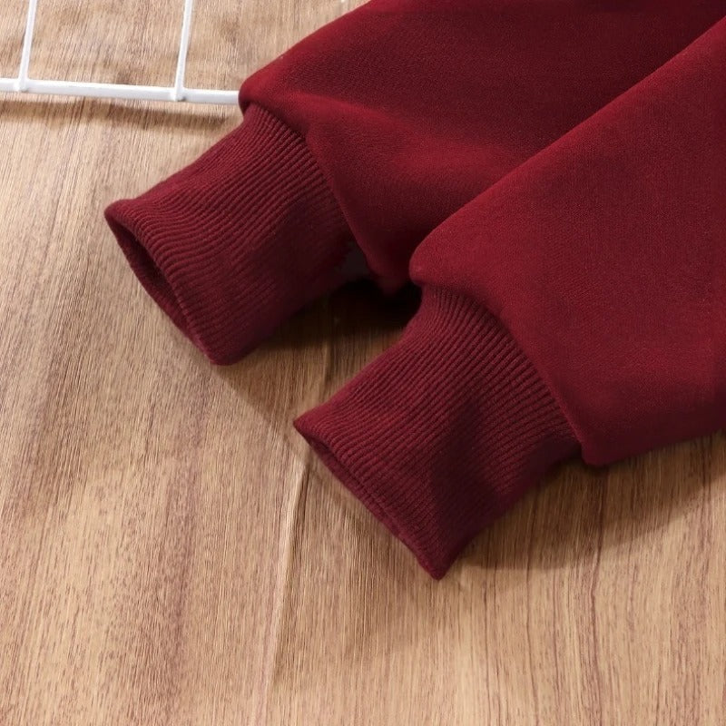 Das Set besteht aus einem Sweatshirt mit Rundhalsausschnitt und einer passenden Hose mit elastischem Bund – beides warm, weich und super bequem.
