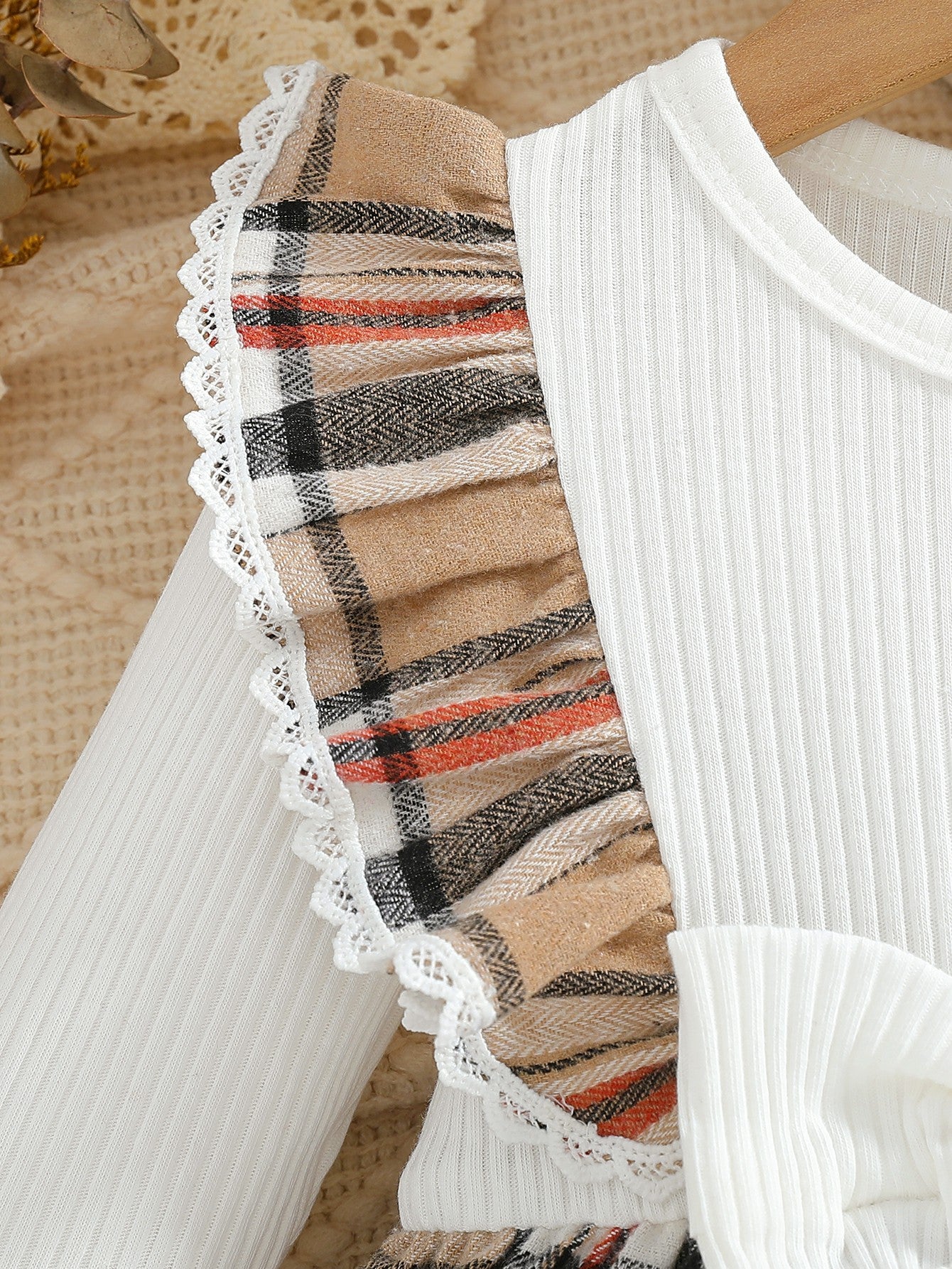 Dieses liebevoll gestaltete Kleid vereint zeitlose Eleganz mit kindgerechtem Komfort. Das klassische Karomuster trifft auf ein fein geripptes Oberteil, zarte Rüschen und eine dekorative Schleife – ein Outfit, das sofort ins Auge fällt und sich gleichzeitig wunderbar weich auf der Haut anfühlt.