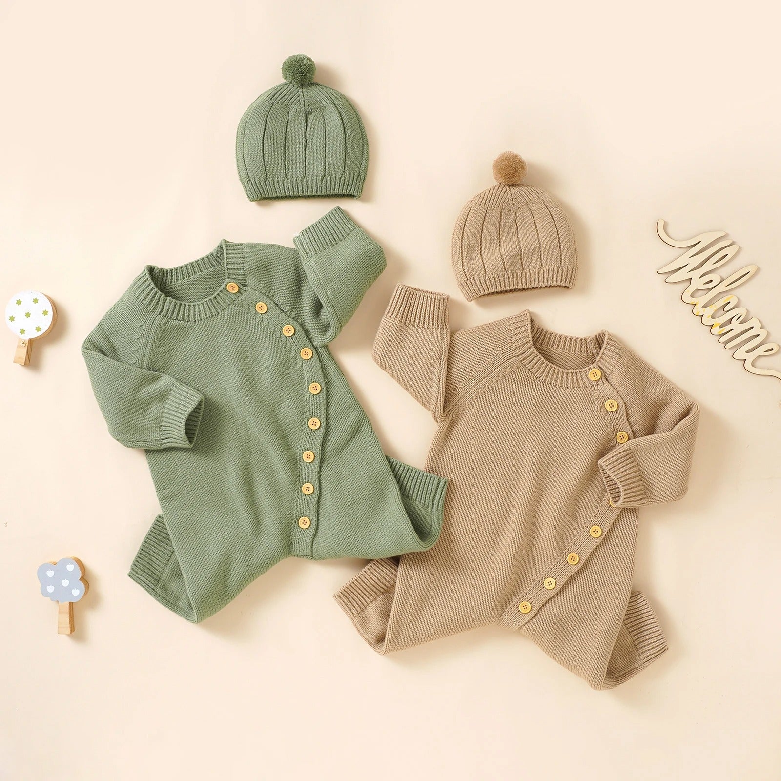 Baby Strick-Overall mit Mütze – weich, wärmend & stilvoll