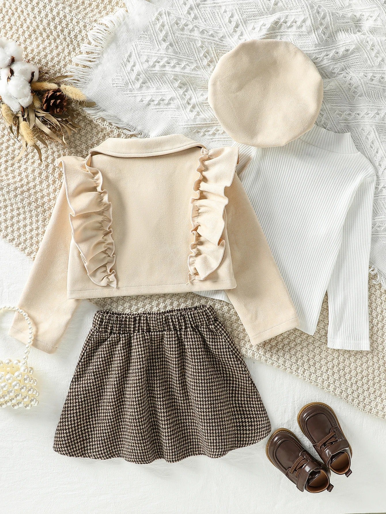 Elegantes 3-teiliges Set mit Rüschenjacke & Hahnentrittrock