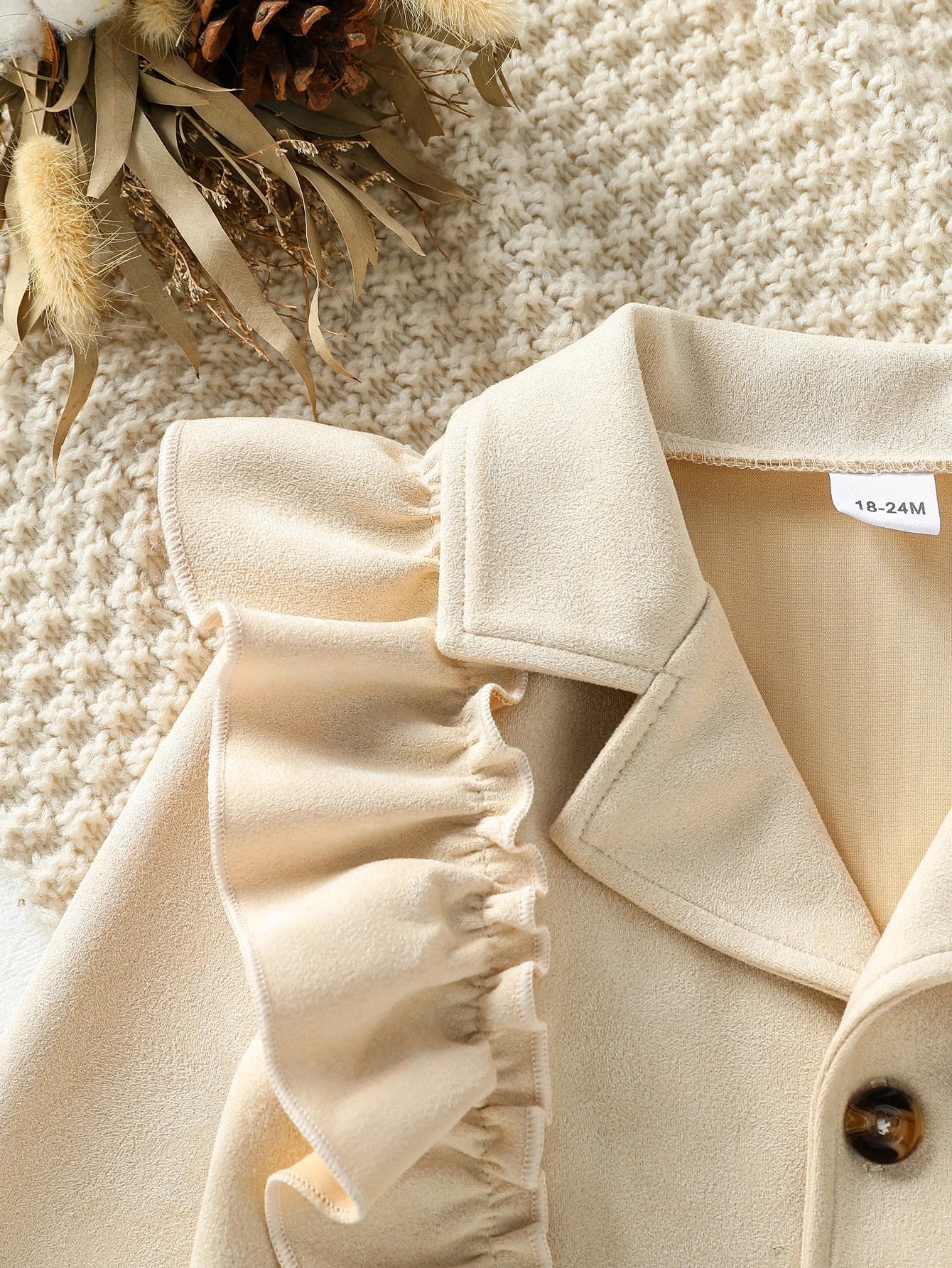 Jacke in Wildlederoptik mit auffälligen Rüschen und Knöpfen in Hornoptik