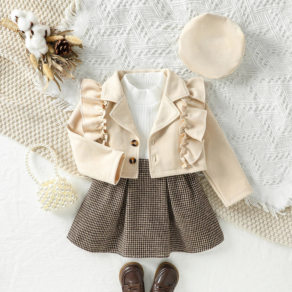 Elegantes 3-teiliges Set mit Rüschenjacke & Hahnentrittrock (Gr. 86–122)