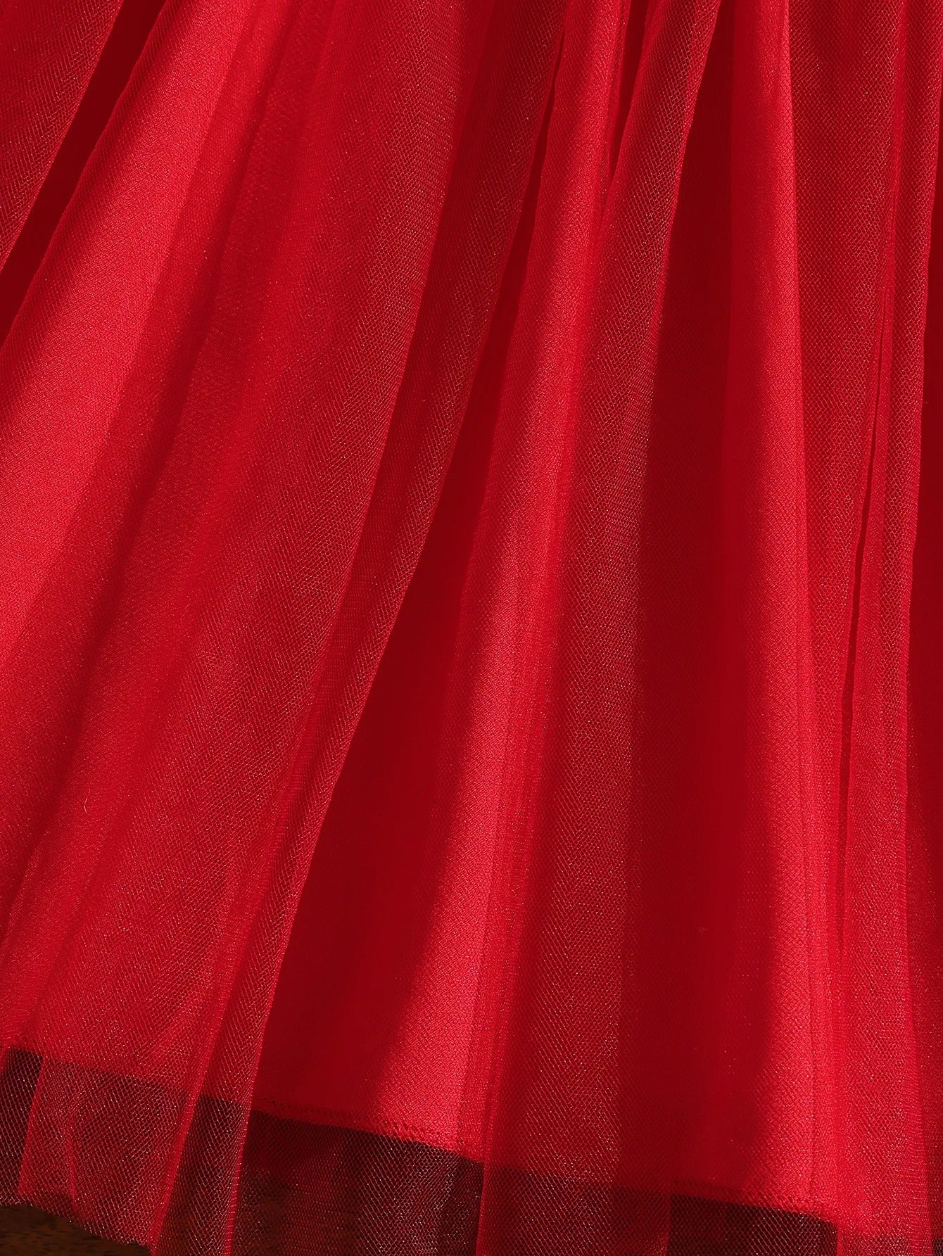 Festliches Kinderkleid mit 3D-Blumen & rotem Tüllrock