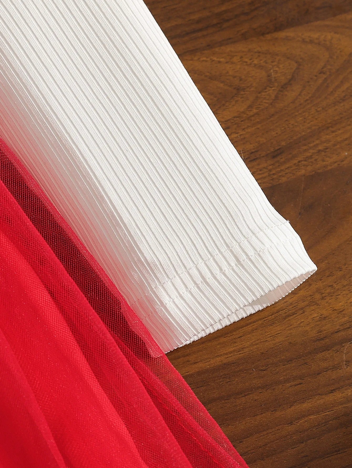 Der elegante Materialmix aus weichem Rippstoff und luftigem Tüll vereint Komfort, Bewegungsfreiheit und stilvolle Eleganz – perfekt für besondere Anlässe wie Weihnachten, Geburtstage, Hochzeiten oder Familienfeiern.