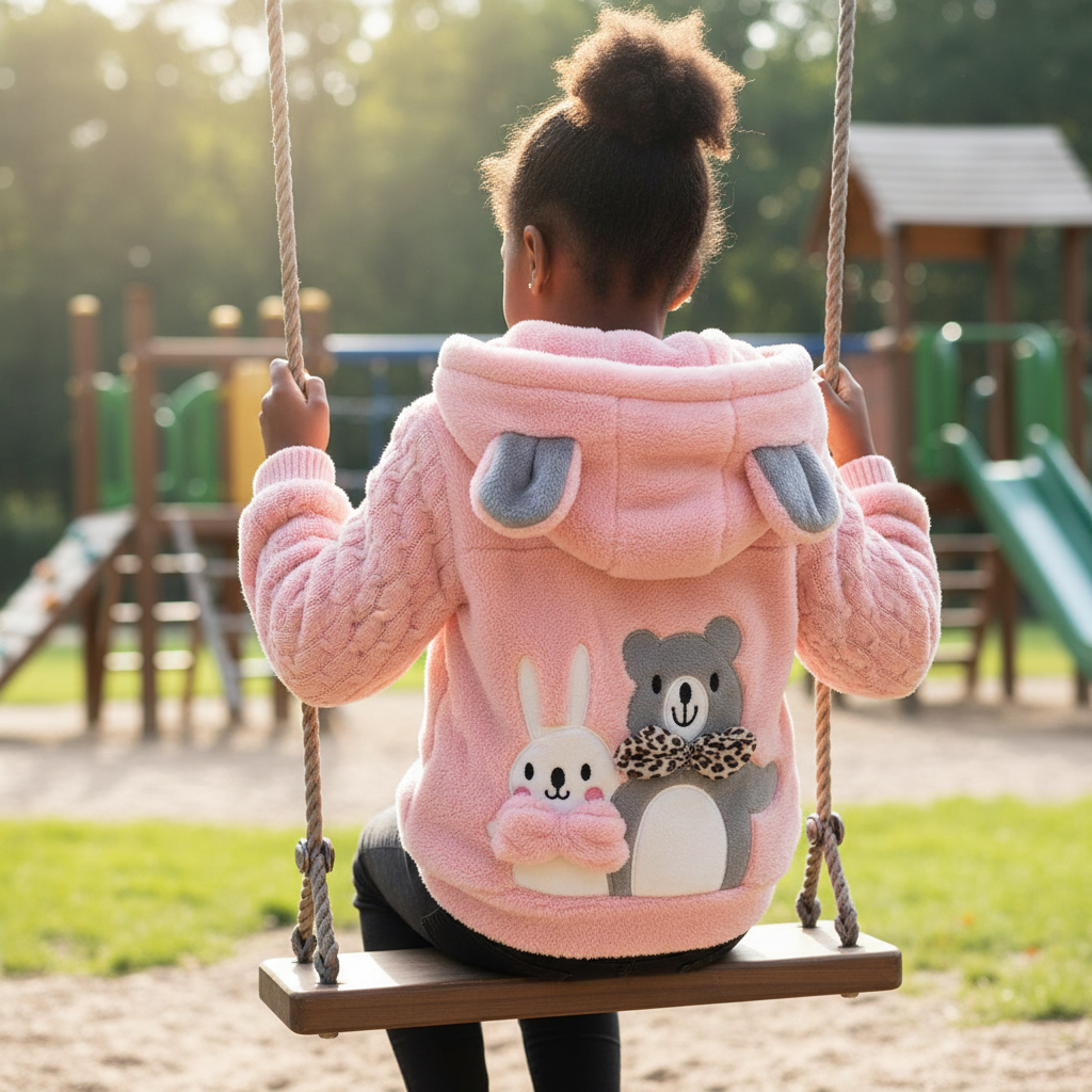 Schenken Sie Ihrem Kind nicht nur Wärme, sondern auch ein Stück Glück mit unserer Kuscheligen Tierfreunde-Kapuzenjacke. Perfekt für kalte Tage, Spielplatzabenteuer oder einfach zum Wohlfühlen zu Hause. Machen Sie den nächsten Winter unvergesslich!