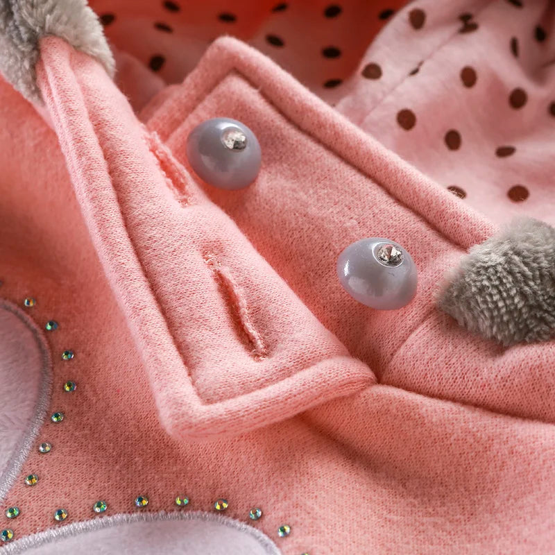 - Kapuze: Die Kapuze ist innen mit einem gepunkteten Futter versehen und bietet zusätzlichen Schutz an kühleren Tagen. Ein praktischer Knopfverschluss am Hals sorgt dafür, dass die Kapuze gut sitzt.