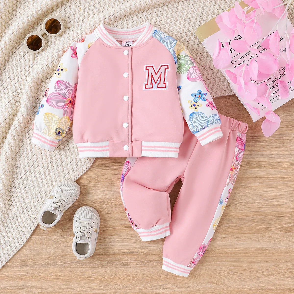 Das Set vereint Funktionalität mit verspieltem Design: elastische Bündchen, ein bequemer Schnitt und das weiche Material sorgen für höchsten Tragekomfort, während das detailreiche Blumenmuster und das applizierte „M“-Patch echte Hingucker sind.