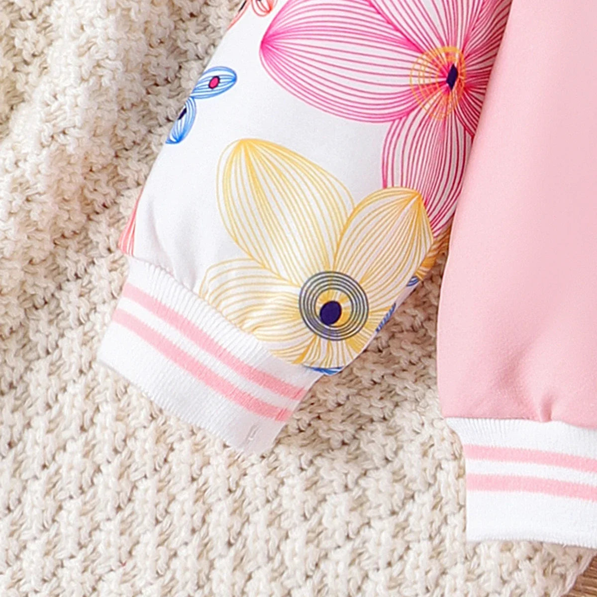 Süßes 2-teiliges Set: Bomberjacke mit Druckknöpfen & Hose im farbenfrohen Blüten-Look