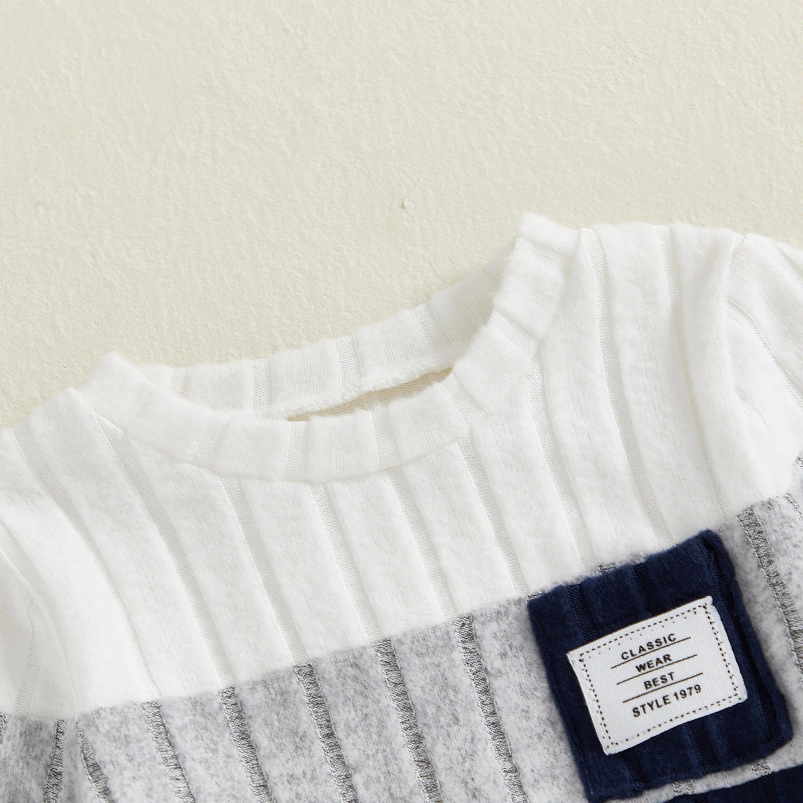 Der Pullover überzeugt mit einem weichen Rundhalsausschnitt, elastischen Bündchen und einer modischen Brusttasche mit Label-Patch. Die Hose besitzt einen elastischen Bund, damit sie beim Krabbeln, Spielen oder Laufen immer perfekt sitzt. Das strukturierte Rippmuster sorgt für ein modernes, hochwertiges Erscheinungsbild.