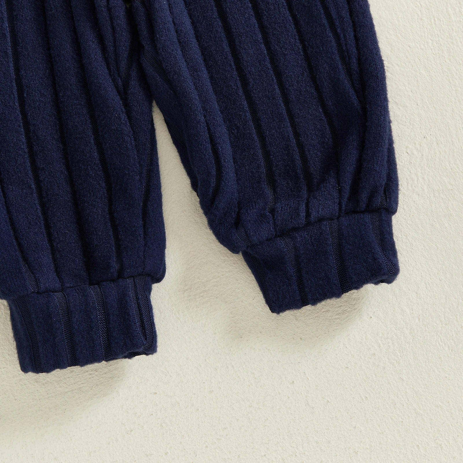 Zweiteiliges Strickset für Jungen – weicher Pullover & Hose in Navy mit Strukturmuster